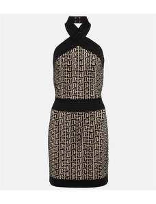 Balmain Monogram halter-neck minidress