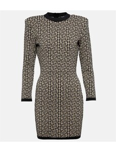 Balmain Monogram wool-blend knit minidress