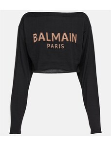 Balmain Cropped jacquard wool-blend sweater