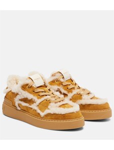 Balmain Shearling-trimmed suede sneakers