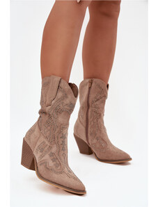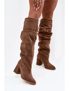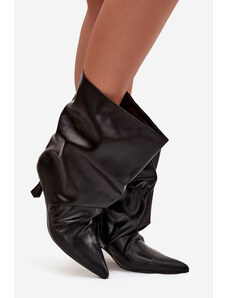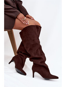 Zazoo Ghete plisate din piele întoarsă naturală cu toc