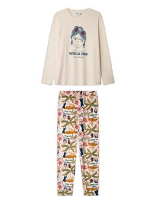 Sinsay - Pijama din bumbac în două piese cu imprimeu - crem