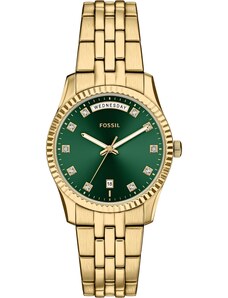 FOSSIL Ceas analogic 'SCARLETTE' auriu / verde smarald