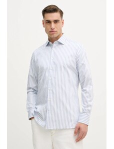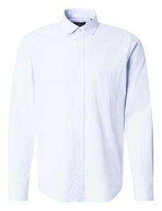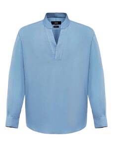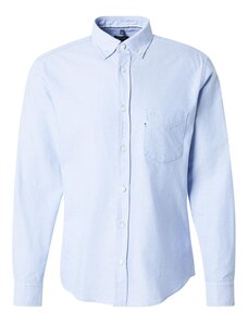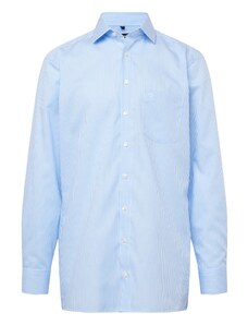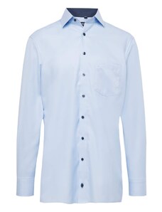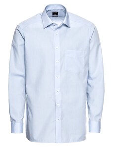 Camasa barbati, croita regular fit din tesatura de culoare bleu cu caro alb si albastru-deschis, cu compozitie de 60% bumbac si 40% poliester. Aceasta tesatura de calitate superioara combina avantajele bumbacului - lasa pielea sa respire, are proprietati non-alergenice, confortabil de purtat, rezistenta la rupere; si ale poliesterului - creeaza senzatia de racoare si se usuca usor, rezistenta crescuta la deformare plastica, foarte rezistent la purtare intensa. Se poate folosi atat pentru o tinuta eleganta purtata in combinatie cu pantaloni stofa, pantofi si un sacou, cat si una casual - completand tinuta cu pantaloni chino, un sacou si pantofi.