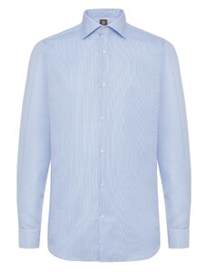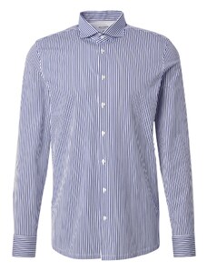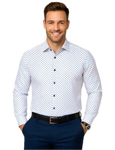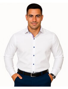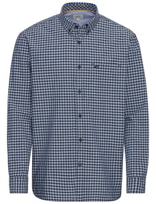Camasa barbati, croita regular fit din tesatura de culoare bleu cu carouri bleumarin si albe, cu compozitie de 60% bumbac si 40% poliester. Aceasta tesatura de calitate superioara combina avantajele bumbacului - lasa pielea sa respire, are proprietati non-alergenice, confortabil de purtat, rezistenta la rupere; si ale poliesterului - creeaza senzatia de racoare si se usuca usor, rezistenta crescuta la deformare plastica, foarte rezistent la purtare intensa. Se poate folosi atat pentru o tinuta eleganta purtata in combinatie cu pantaloni de stofa, pantofi si un sacou, cat si una casual - completand tinuta cu pantaloni chino, un sacou si pantofi casual .