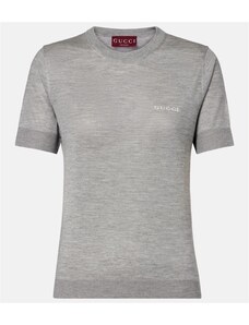 Gucci Logo knitted cashmere and silk T-shirt