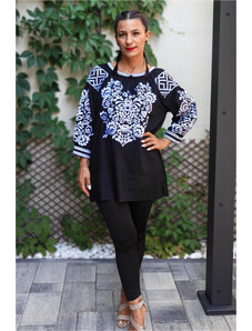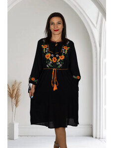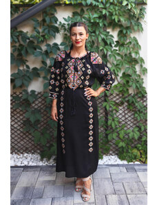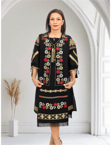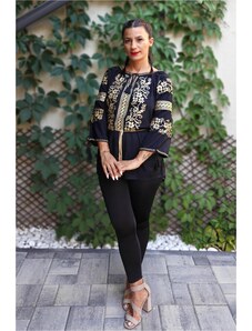 Magazin Traditional Bluza tip ie neagra cu broderie florala - Lavinia