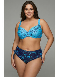 Embody Costum de Baie Doua Piese Dama Marimi Mari , Model Floral Albastru si Bleumarin, Sutien cu Sustinere si Slip Talie Inalta Ajustabil Lateral Lm057
