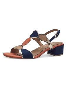 MARCO TOZZI Sandale bleumarin / maro deschis / corai / argintiu