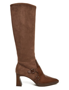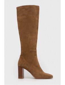Medicine cizme din piele intoarsa femei, culoarea maro, cu toc drept