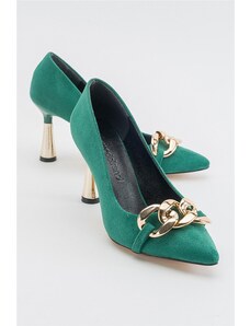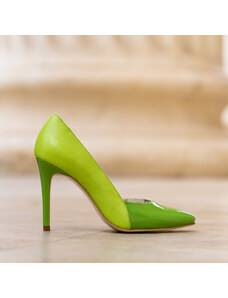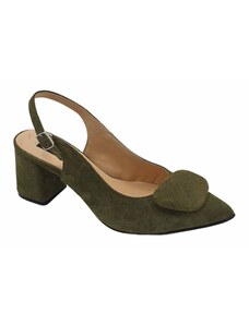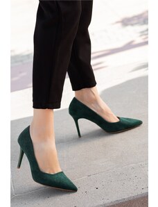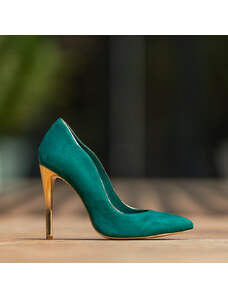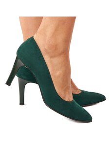 Sabrine Studio Pantofi Stiletto din Piele Naturala Intoarsa Verde- Cod S397