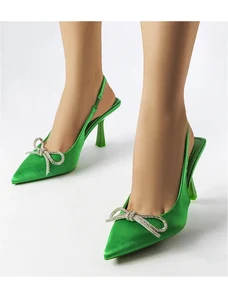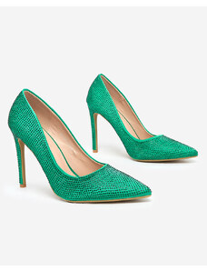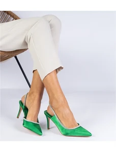 Gemre Pantofi verzi din satin cu toc, cu pietre strălucitoare și călcâi deschis Mrozzi