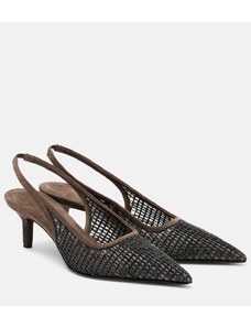 Brunello Cucinelli Monili 55 suede-trimmed slingback pumps