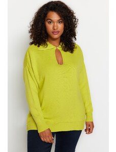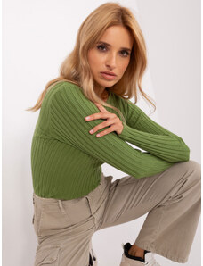 Fashionhunters Light green short classic sweater with a round neckline