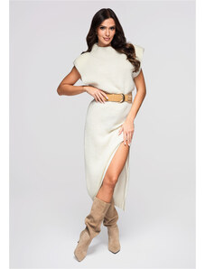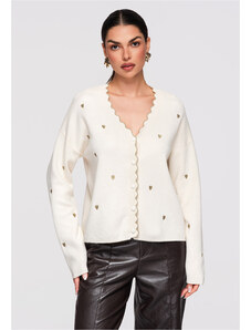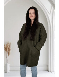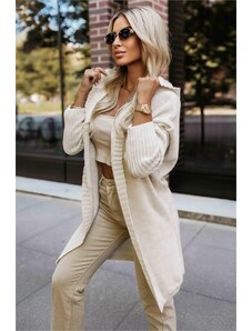 Numoco basic 629-1 Comfortable oversized cardigan with a hood and a stylish patch - beige