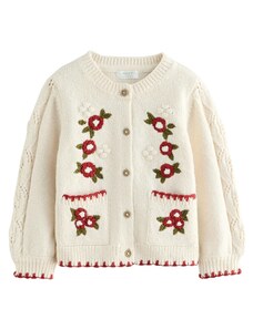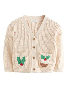 Next Geacă tricotată 'Holly Jolly Christmas' ecru / galben / verde iarbă / roșu intens