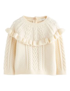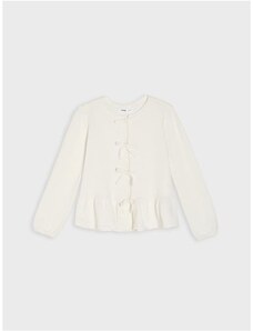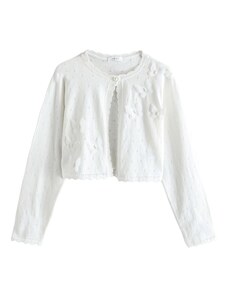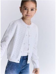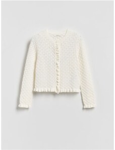 Sinsay - Cardigan ajurat cu volane decorative - alb