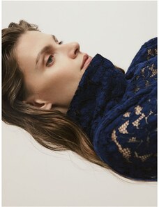 Reserved - Bluză ajurată cu guler înalt - albastru-cobalt