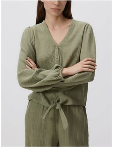 Reserved - Cămașă din muselină cu cordon - verde-oliv deschis