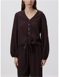 Reserved - Cămașă din muselină cu cordon - maro-închis