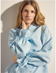 Reserved - Cămașă cu adaos de in - albastru-pal