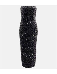 Alex Perry Leopard-print strapless velvet midi dress