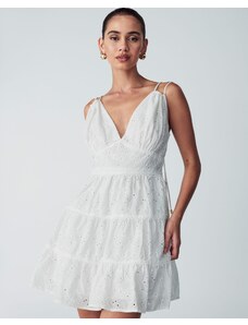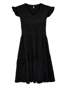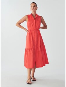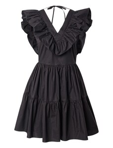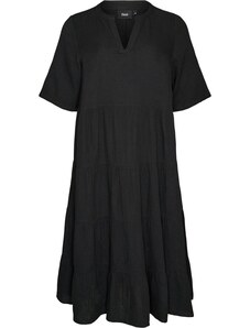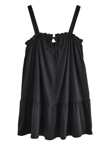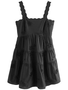 Sinsay - Rochie midi din bumbac ajurat cu volan și șnur - negru