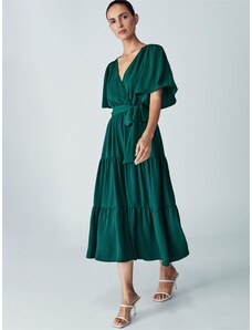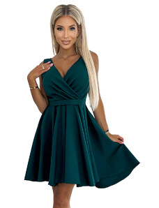 NUMOCO 348-11 SCARLETT - Kloszowana skirt with a kopertowy décolletage - ZIELONA