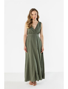 Numoco basic 562-4 NASTIA Long dress with a neckline and short sleeves - green