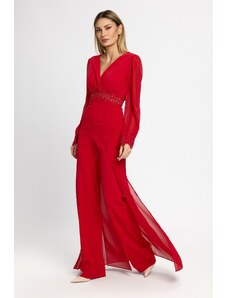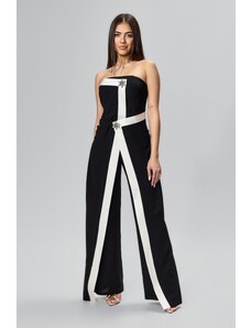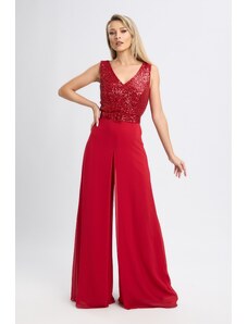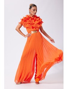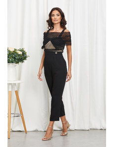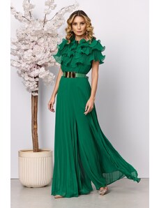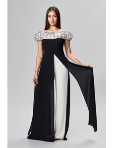 Salopeta de ocazie din voal cu bust accesorizat cu volane Stylish Bicolora-M