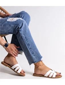 Shelvt Women's white slip-on sandals