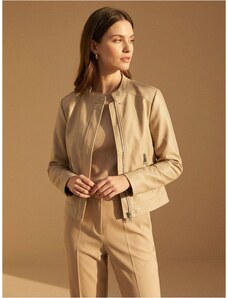 Sinsay - Geacă biker cu guler înalt din imitație de piele - bej