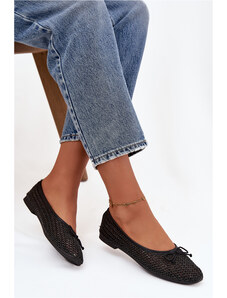Boto Balerine negre cu model tricotat și fundă