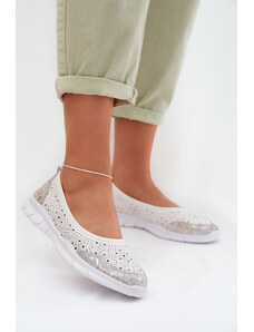 Balerini GOLD DEER argintii, 420727, din piele naturala