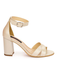 SUPERLATIVE Sandale dama din piele naturala bej sidefat cu toc gros 8 cm 13803