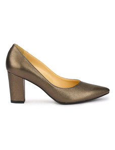 SUPERLATIVE Pantofi dama din piele naturala bronz cu toc gros 7.5 cm 15558