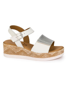 SUPERLATIVE Sandale dama din piele naturala alba-argintie cu platforma 5.5 cm 18340