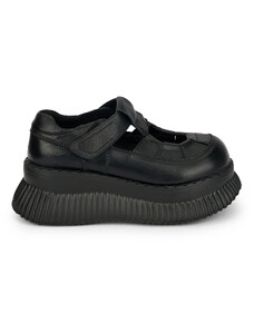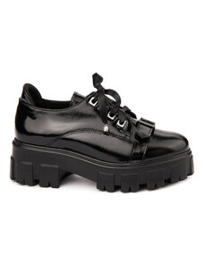 SUPERLATIVE Pantofi casual damă din piele naturală neagra cu talpa inalta 5.5 cm 19645