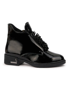 SUPERLATIVE Ghete dama din piele naturala neagra cu accesoriu 14435