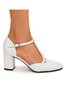 SUPERLATIVE Pantofi dama din piele naturala alba cu toc gros 5.5 cm 19833