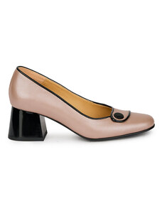 SUPERLATIVE Pantofi dama din piele naturala bej sidefat cu toc gros 7 cm 13801