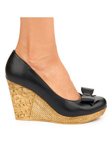 SUPERLATIVE Pantofi dama din piele naturala neagra cu talpa inalta 5.5 cm 19506