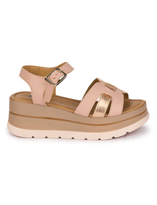 SUPERLATIVE Sandale dama din piele naturala roz cu platforma 6 cm 18260