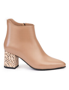 SUPERLATIVE Botine dama din piele naturala bej cu toc gros 6.5 cm 14501