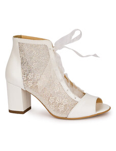SUPERLATIVE Botine dama din piele naturala alba sidef cu toc gros 7 cm 18657