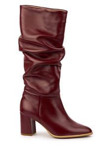 SUPERLATIVE Cizme dama din piele naturala visinie cu toc gros 7.5 cm 14721