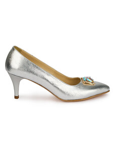 SUPERLATIVE Pantofi dama din piele naturala argintie cu toc subtire 7 cm 19465