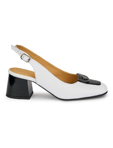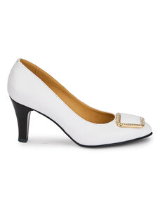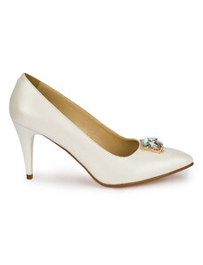SUPERLATIVE Pantofi dama din piele naturala alba cu accesoriu metalic 19495