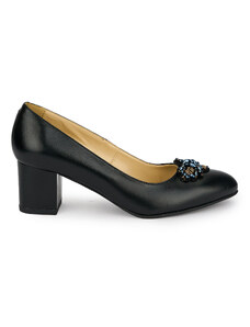 SUPERLATIVE Pantofi dama din piele naturala neagra cu toc gros 5.5 cm 19451