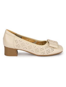 SUPERLATIVE Pantofi dama din piele naturala crem perforata cu toc gros 3.5 cm 19591
